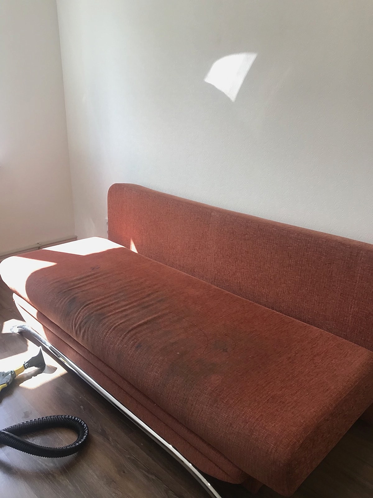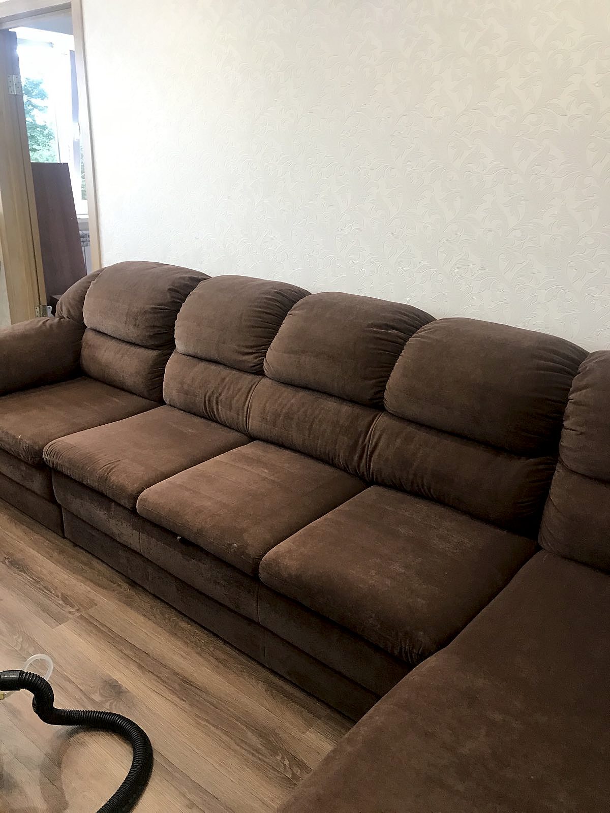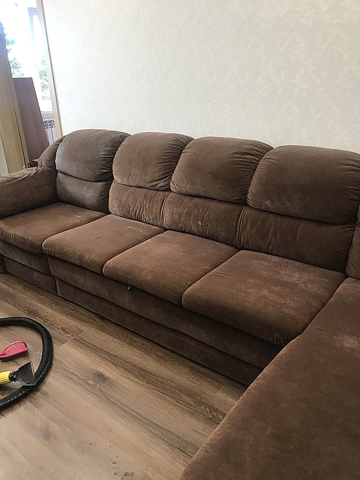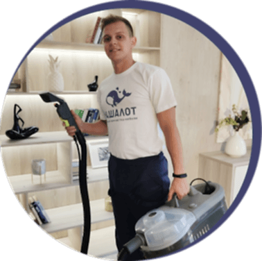 После предыдущих этапов в дело вступает профессиональная аппаратура. С её помощью мы вымываем средство с растворённой грязью из обивки и удаляем специфические запахи.